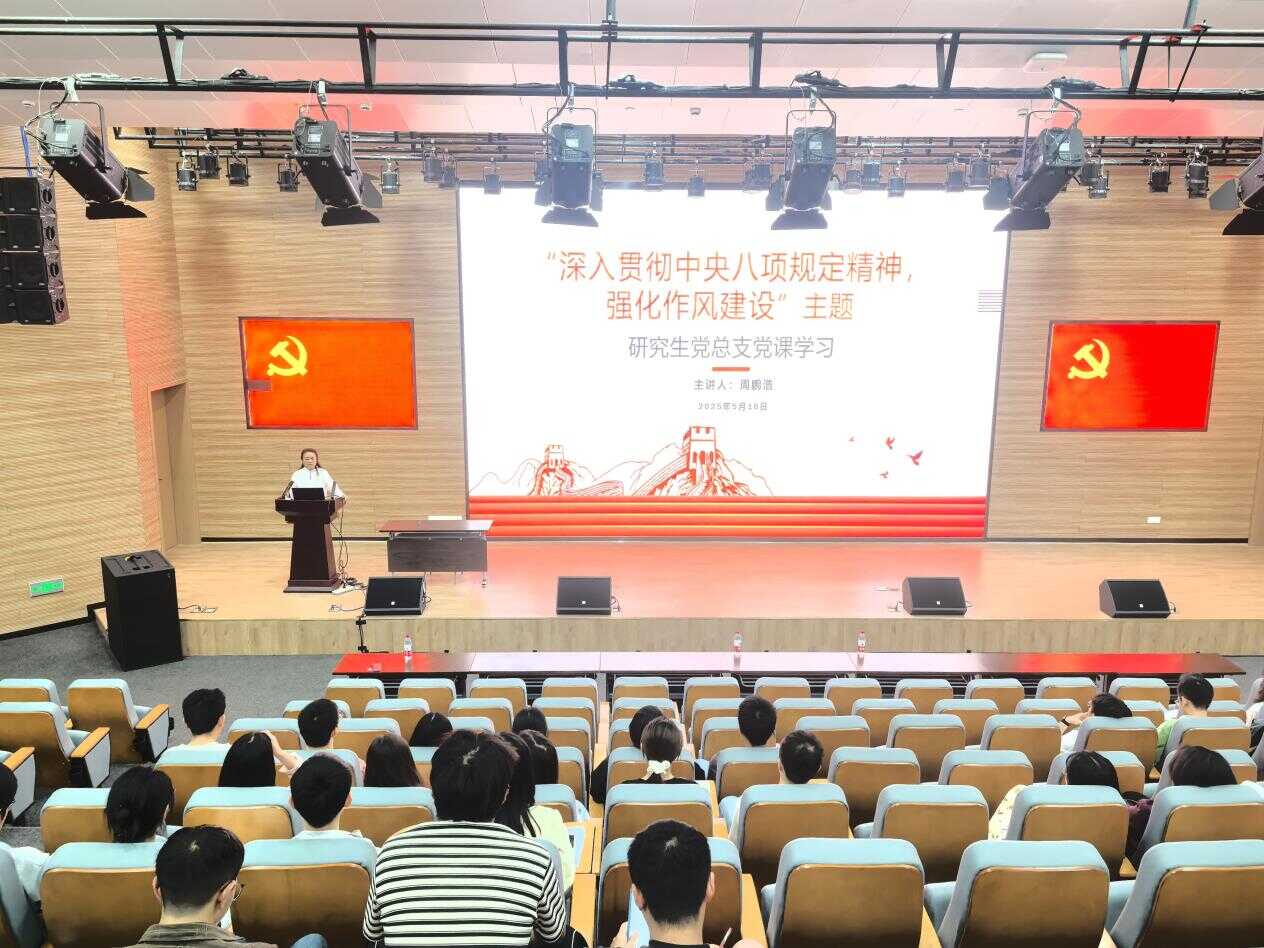 纪委书记周鹏浩做了题为《学习中央八项规定精神,强化作风建设》的党课报告。报告中谈到,学术不端、科研资源浪费等问题本质上是作风问题,须从党性修养层面深化认识,要使国家对科技创新的投入有效发挥作用。她希望研究生党员应结合研究所“科研诚信审查”“导师立德树人评价体系” 等制度的学习从科研生涯的初始阶段就提高学术严谨性,在科研选题、学术交流、团队协作中严守科研诚信的红线底线,使自己的科研生涯行稳致远。