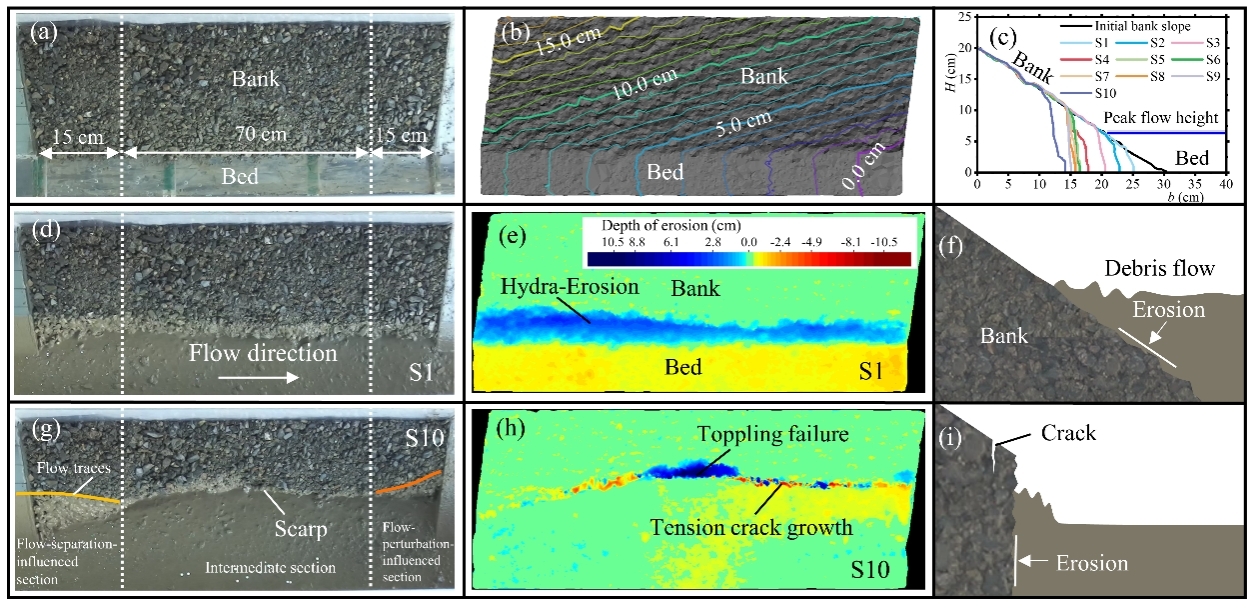 ????进而在沟道沟岸植被对泥石流冲淤过程调控方面,揭示了裸土沟岸退缩与泥石流侧向侵蚀互馈机制并构建了沟岸退缩参数化模型;阐明了泥石流作用下草本植物对沟岸侵蚀的调控机制,明确了沟岸侵蚀效率与草本植物特征参数间的关系;探明了沟道内乔木林对泥石流固体物质淤积效应的附加拦截机制,提出了考虑林带影响的泥石流淤积比降和淤积量计算方法。该研究初步构建了“拦砂坝淤积地貌-拦砂率-生物措施”之间的动态反馈模型,突破了防治工程减灾功效以传统静态评估为主的局限性,为泥石流防治工程减灾功效动态评估与运行维护提供理论依据。