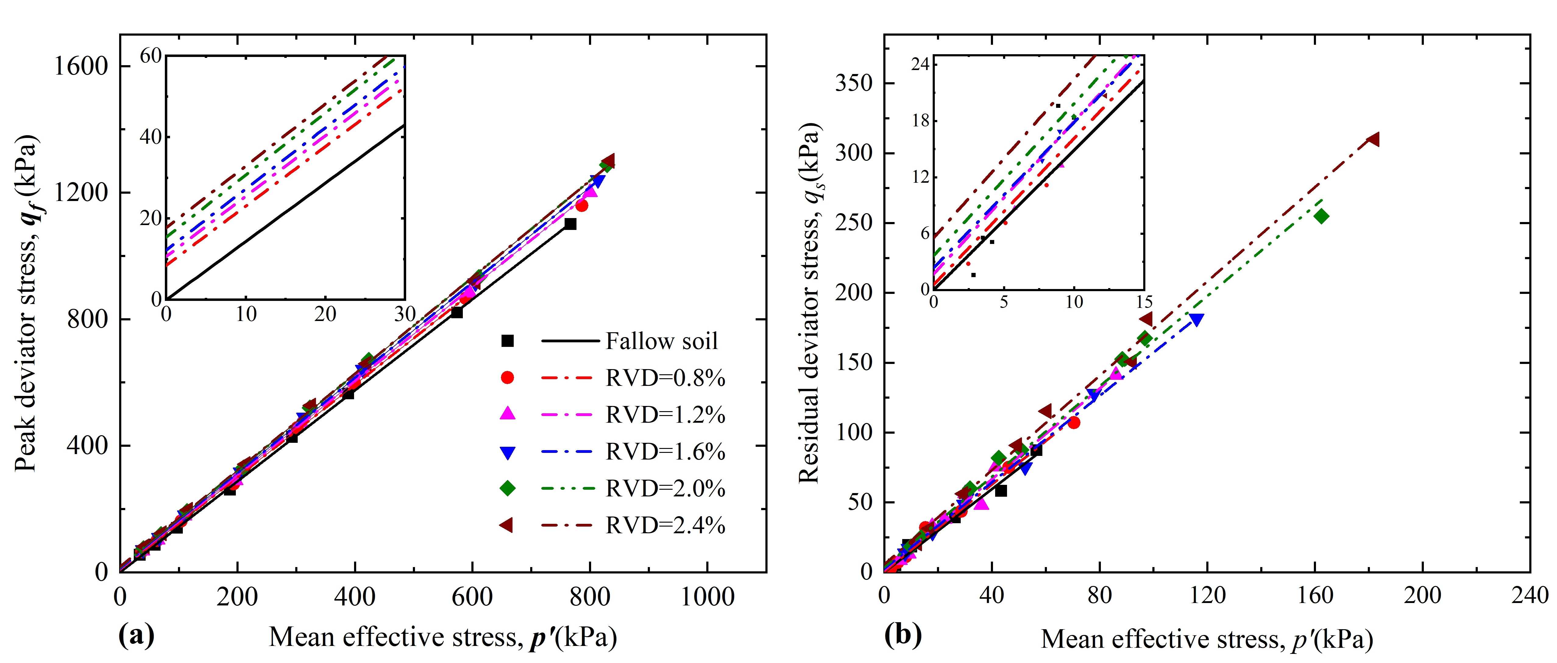 ????针对上述问题,研究团队构建了室内三轴剪切实验体系,选用杉树根系与砂土混合构造复合材料,设计了五级根系体积密度(0.8%400 kPa)组合,系统开展96组CD/CU路径三轴试验。结果表明:(1)根系形成土体内部“微纤维网”结构,显著提升峰值与残余抗剪强度;(2)在不排水条件下,有效抑制孔隙水压力积聚,使砂土脆性指数下降近50%,抗液化性能显著增强;(3)临界状态线整体随根密度抬升,且呈现应力路径依赖性,首次实验证实根-土复合体的临界状态行为受应力路径影响。