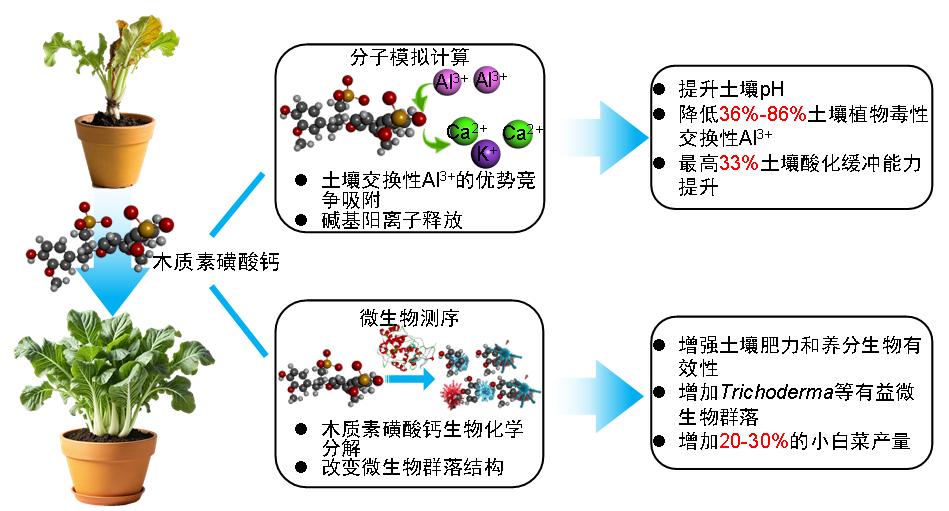????该研究揭示了木质素磺酸钙通过“功能基团-阳离子交换吸附”和“有机质-酶协同作用”协同提升酸性土壤肥力的生物化学分子动力学机制,突破了传统碱性改良剂单一中和路径的局限。木质素磺酸钙作为造纸工业的副产物,来源广泛、成本低廉,兼具土壤结构改良和有机质补充双重效应,高度契合“有机废弃物资源化利用+土壤多功能协同调理”理念,具备广阔应用前景。该成果为酸瘦土壤高效治理和农业绿色发展提供了重要理论和技术支撑。该研究获得了国家农业科技重大项目的资助。