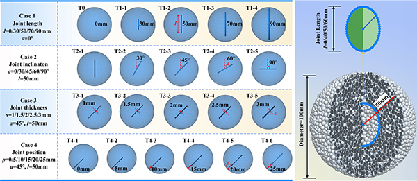 ????针对上述问题,中国科学院成都山地灾害与环境研究所何思明团队吴永副研究员等,基于离散元方法(DEM)研究了三维节理结构对滚石冲击破碎行为的影响,提出了“体积破碎率”等定量指标,并揭示了节理在影响破坏模式、能量耗散等方面的重要作用。研究基于室内试验与数值模拟相结合的方法,探讨了预存节理的几何特征(长度、角度、厚度、位置)对滚石冲击破碎的机制影响。