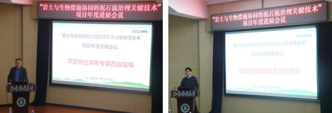 ????11月28日,国家重点研发计划项目“岩土与生物措施协同的泥石流治理关键技术”2025年度进展会议在北京林业大学召开。会议认真总结了2025年度工作进展、阶段性成果以及2026年度工作计划?;嵋橛上钅壳M返ノ恢泄蒲г撼啥忌降厮橹翁獬械5ノ槐本┝忠荡笱С邪?。成都山地所科技处处长葛永刚研究员、中国地质调查局水文地质环境地质调查中心张发旺研究员共同主持会议。