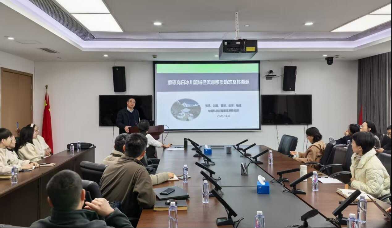 ????12 月 4 日下午,成都山地所人事教育处联合山地自然灾害与工程安全重点实验室、中国科学院青年创新促进会山地所小组共同举办了山地科学论坛活动。本次论坛以 “廓琼岗日冰川流域径流悬移质变化及其溯源研究” 为主题,特邀中国科学院青藏高原所研究员张凡作专题学术报告。所长康世昌主持论坛。