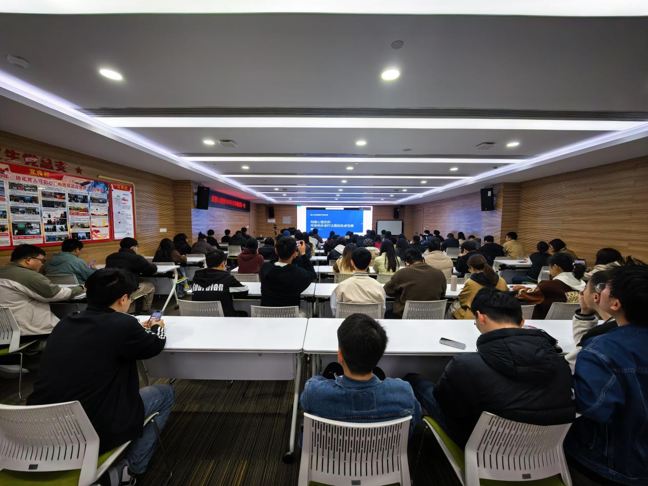 活动特邀中国科学院大学心理健康教育中心心理咨询师葛怡老师作心理专题辅导。葛怡老师以《构建心理优势:用接纳承诺疗法摆脱焦虑怪圈》为题,深入浅出地讲解了接纳承诺疗法的核心理念。通过生动的视频素材和典型案例,她将抽象的心理学理论转化为易于理解和实践的方法,引导同学们在互动中积极思考、自我探索,现场气氛热烈。