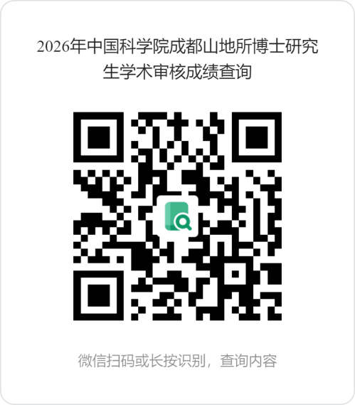成绩查询 首页>研究生教育>招生动态>成绩查询 2026年中国科学院成都山地所博士研究生学术审核成绩查询通知 发布时间:2026-03-10 字号:【 小中大 】 各位考生:??我所提供2026年博士“申请-考核”学术审核成绩的查询,此仅为学术审核成绩,不代表录取结果。??查询请扫描二维码