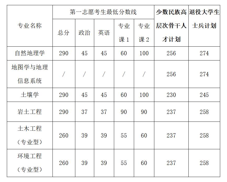 ?。?)各专业复试分数线见下表?