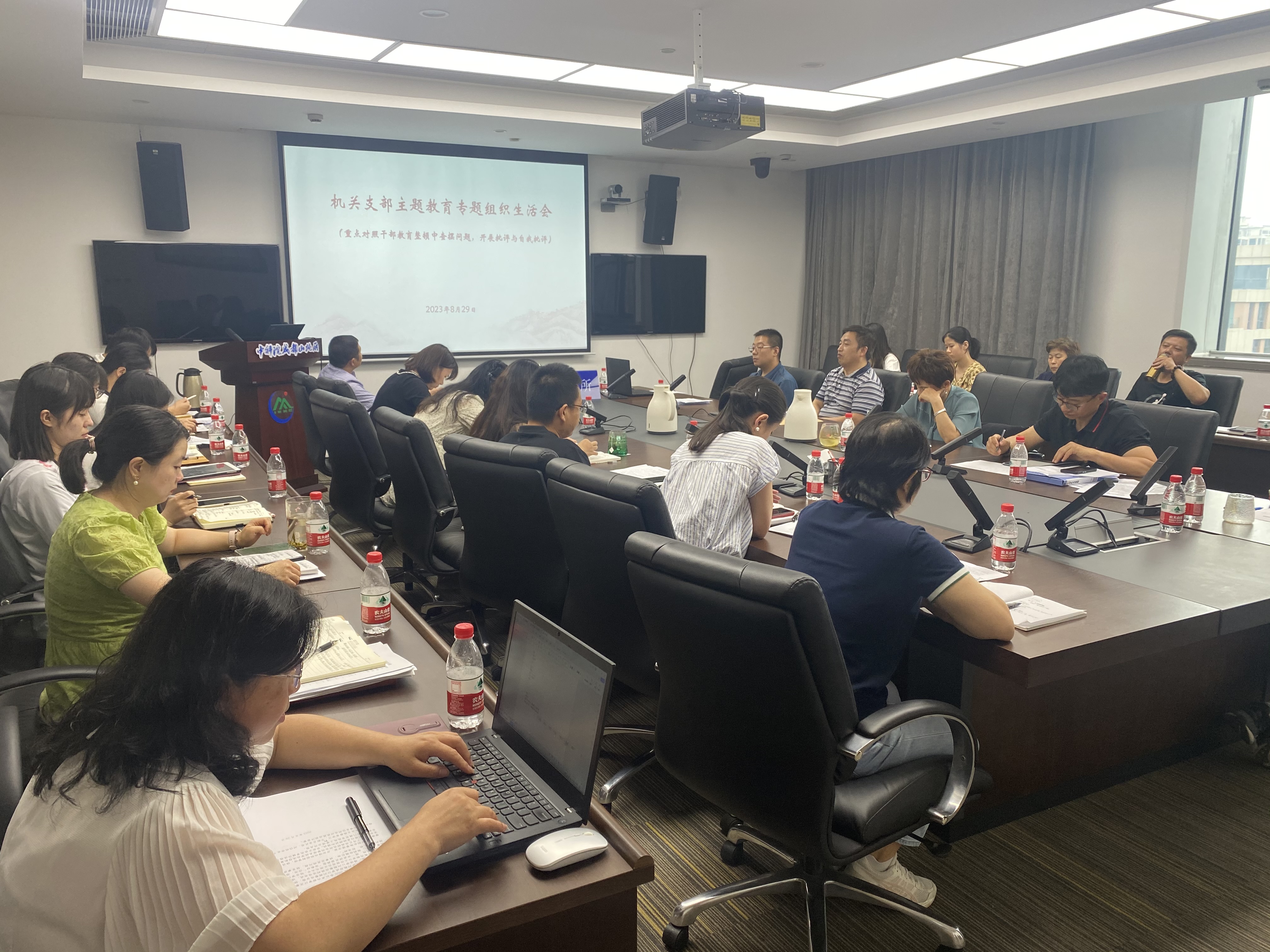 2023829日,机关党支部召开主题教育专题组织生活会,机关党支部党员同志近30人参加会议。到会党员集体佩戴党徽,亮明身份。会议由支部书记代丹主持。党委书记、副所长罗晓梅,党委副书记、纪委书记谭多财以普通党员身份参加会议。