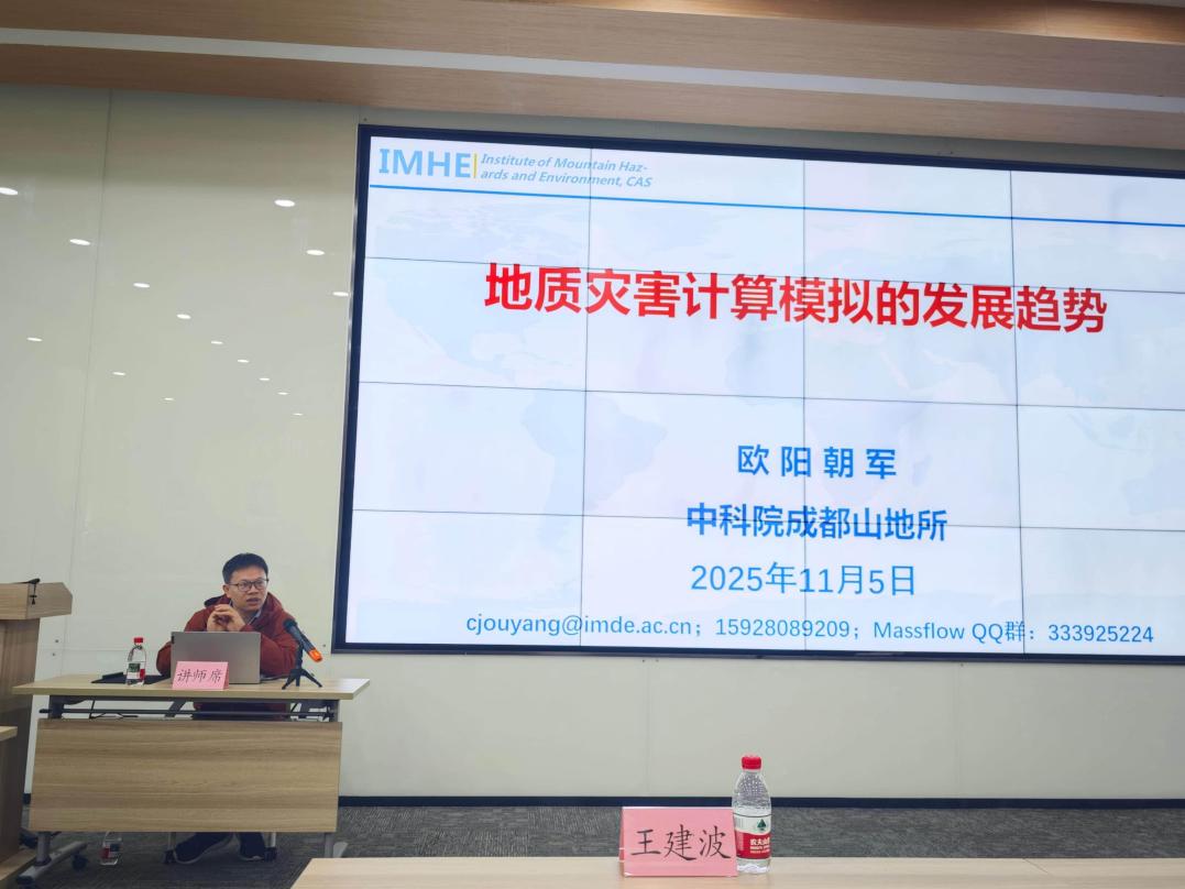 ????培训特邀国家超级计算成都中心常务副主任王建波博士、山地自然灾害与工程安全重点实验室副主任欧阳朝军研究员作主题报告。两位专家围绕超智融合与科学智能、超级计算与数字孪生,以及高性能计算、人工智能在地质灾害研究中的应用、灾害动力学模拟、AI 辅助隐患识别等方向,系统分享了相关研究进展与前沿动态。
